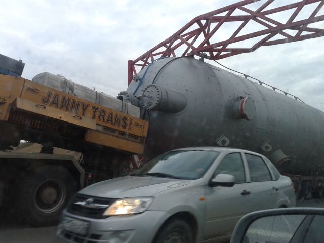 Колонна, перевозившая крупногабаритный груз, т. н. «слона», проехала под ограничителем высоты, установленным у путепровода со стороны Привокзального, а вот под вторым ограничителем протиснуться не смогла. Чтобы колонна продолжила путь, его пришлось приподнимать краном, в результате он был повреждён.