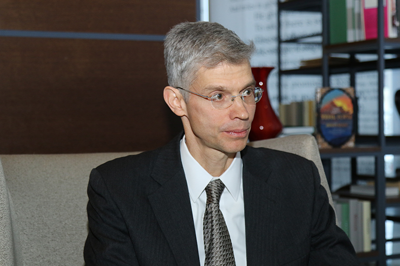 Мы общались без переводчика, дипломат прекрасно владеет русским языком – до поступления на дипломатическую службу Поммершайм работал в CNN в Москве, позже отточил русскую речь в качестве генконсула на Дальнем Востоке. До своего назначения в прошлом году в Казахстан он также курировал вопросы двусторонних отношений между США и Арменией, Азербайджаном и Грузией, служил в политических отделах Посольств США в Японии, Китае, Беларуси и Германии... Назначая интервью, сотрудники посольства подчеркнули, что заместитель посла готов говорить на любые темы.