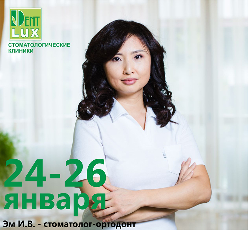 С 24 по 26 января в Dent-Lux Атырау принимает один из лучших ортодонтов Казахстана - Эм Ирина Владимировна. Она проводит лечение неправильного прикуса и неровного положения зубов всеми видами традиционных, а также современных брекет-систем и элайнеров.