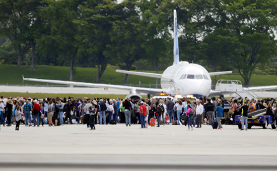Люди на взлетной полосе аэропорта Форт-Лордердейл после стрельбы. 6 января 2017 года. Фото: Wilfredo Lee/AP