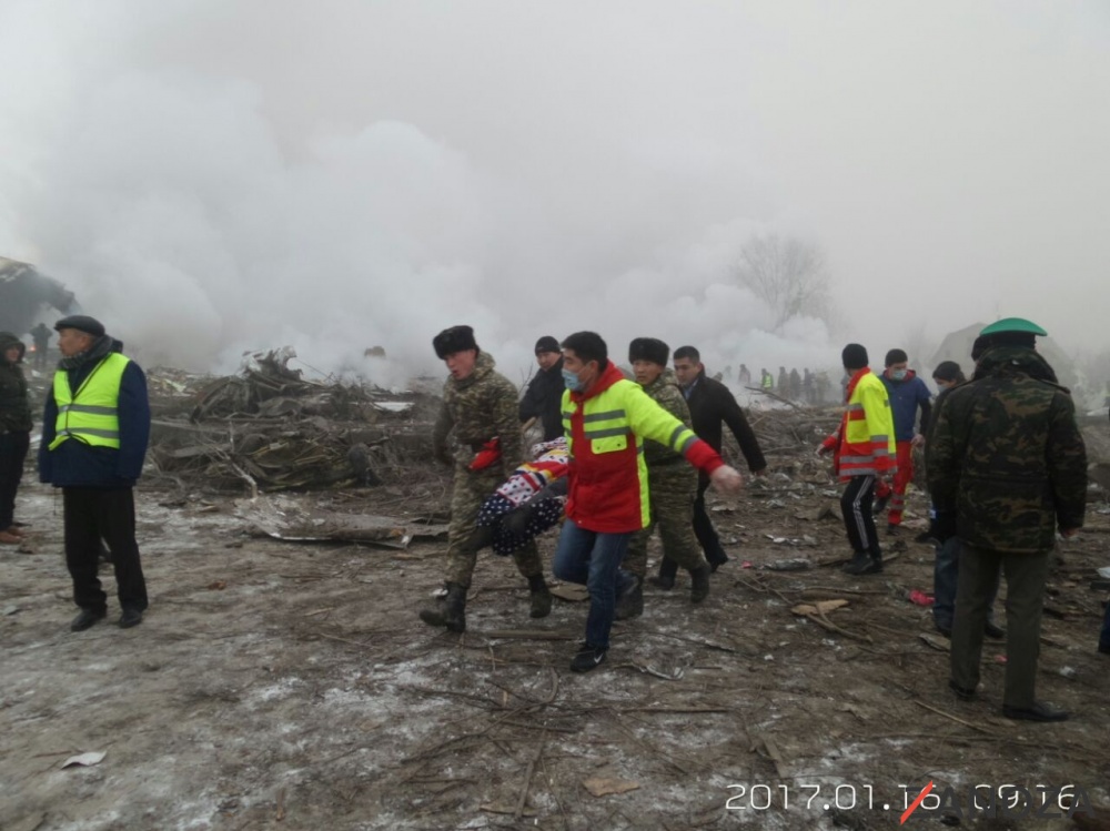 16 января в районе падения грузового авиалайнера подтверждена гибель 9 взрослых и 6 детей из местных жителей, а также одного из пилотов самолета. В настоящее время оказывается помощь примерно 6 пострадавшим. Список погибших и пострадавших формируется. Кроме 3 реанимобилей станции СМП Бишкек, на месте трагедии работают также сельские скорые Чуйской области", - сообщил заместитель главного врача станции скорой медицинской помощи г.Бишкек Егор Борисов.