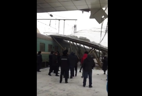 По мнению очевидцев, кровля над перроном обрушилась под тяжестью снега, передает корреспондент ИА «NewTimes.kz».