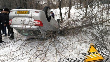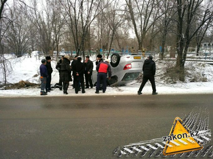 Под Алматы, в пос.Казцик произошло ДТП с перевертышем, передает корреспондент Zakon.kz.