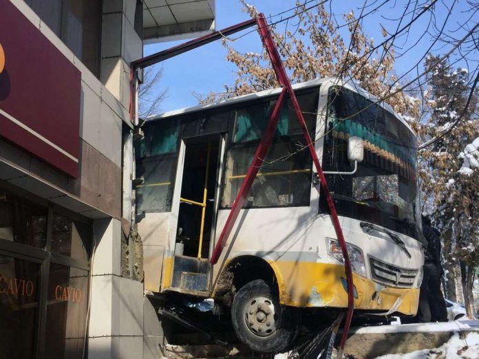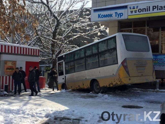 В Шымкенте пассажирский автобус 103 маршрута въехал в здание по улице Туркестанской. К счастью, в салоне было пусто, сообщает Otyrar.kz.