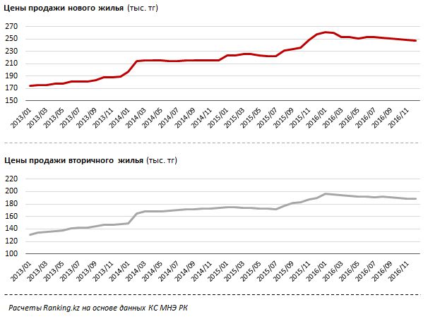 Напомним, что в 2015 году продавцы фактически моментально отреагировали на резкий переход к свободно плавающему валютному курсу тенге. В результате стоимость продажи нового жилья за год выросла на 20%, на вторичное жилье - на 10%.