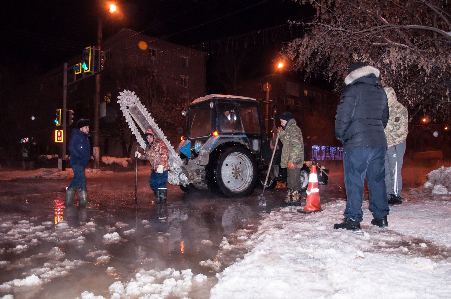 По данным коммунальщиков, работникам горводоканала пришлось отключить водоснабжение по всему городу. До этого они перекрывали задвижки вокруг места аварии, пытаясь подобраться к месту порыва на улице Павла Васильева. На это ушли почти сутки. Всё это время поток воды стекал по улице. Затопленными оказались дома на соседних улицах. И всё это при температуре -26 градусов.
