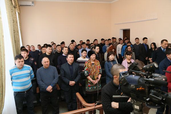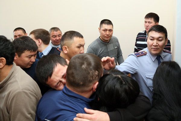 Полицейские явно сочувствовали теперь уже бывшим коллегам и начали громко аплодировать, когда младшего инспектора управления миграционной полиции ДВД Алмата Кабенова оправдали по одному из эпизодов. Услышав, что ни один из подсудимых не отправится за решетку, стражи порядка снова разразились аплодисментами.