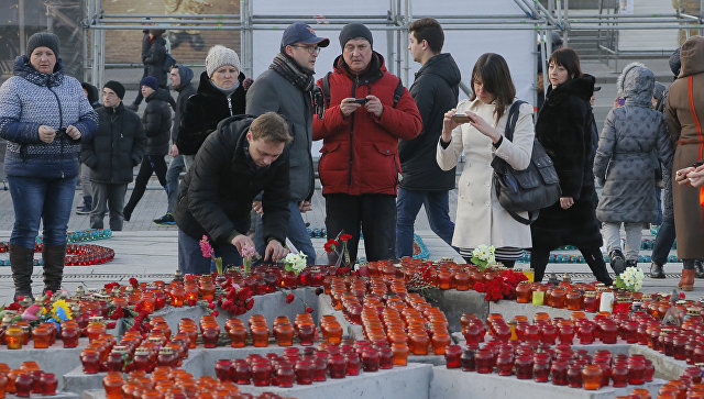 КИЕВ, 20 фев — РИА Новости. Люди приходят в центр украинской столицы почтить память погибших в ходе беспорядков на майдане Незалежности (площади Независимости) в Киеве в 2014 году, передает корреспондент РИА Новости.