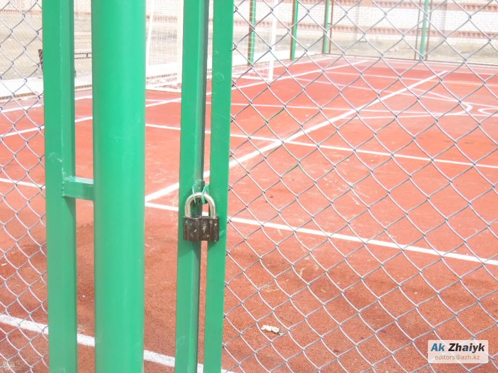 Затем мы все поехали на спортивную площадку, построенную в прошлом году. Объект тоже закрыт на ключ, он ещё не сдан в эксплуатацию.