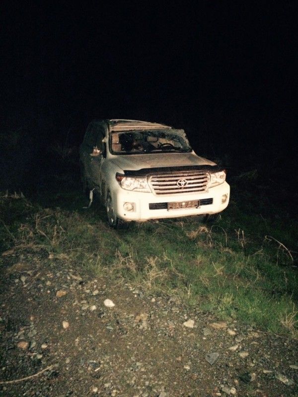 По словам директора певца, Ернар Айдар вместе с братом - продюсером возвращались с гастролей. Из-за плохой погоды водитель Toyota Land Cruiser 200 не справился с управлением и выехал в кювет. Фото с места происшествия. Предоставлено родными певца.
