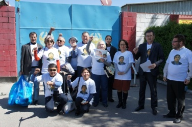 3 мая сотрудники фонда «Адил соз» вместе с членами общественного Комитета по защите Жанболата Мамая приехали к следственному изолятору №18, где содержится арестованный редактор «Трибуны», передали посылку с продуктами и поздравления. На всех собравшихся были футболки с фотографией Ж.Мамая и надписью «Мамай вам не Димон» и «Жанболат жас кыран».