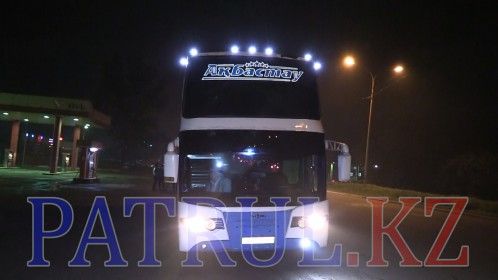 На 18 километре трассы Алматы-Бишкек инспекторы дорожно - патрульной полиции Алматинской области остановили частный междугородний автобус, следовавший из Алматы в Шымкент, который ехал без заднего государственного номера.