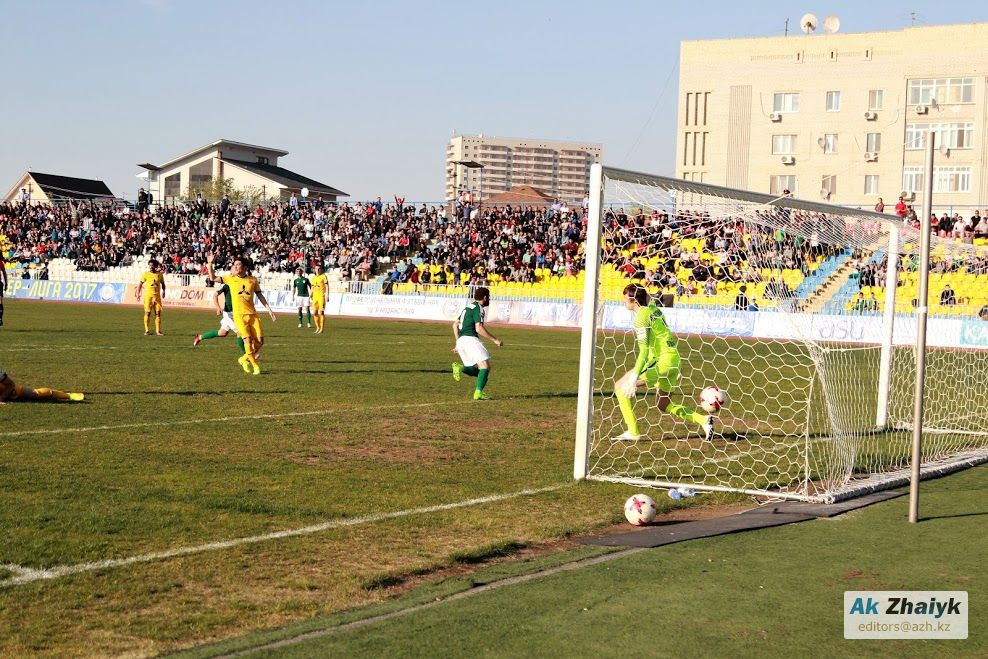 Мало кто, включая букмекеров, верил, что «Атырау» сможет оказать достойное сопротивление одному из лидеров чемпионата. Сыровата ещё дружина Сергея ПАВЛОВА, сыгранности не хватает, и это стало заметно с первых минут игры. Но! Желание хозяев продавить оборону соперника было в этот день запредельное. Да, бело-зеленые часто теряли мяч, однако атаку надежно подстраховывала защита. На 24-й минуте «Атырау» заработал угловой, Марат ХАЙРУЛЛИН навесил на ближнюю штангу, да так хитро, что мяч влетел в ворота от защитника Яна ВОРОГОВСКОГО. Автогол, и 1:0 в пользу хозяев. После гола «Атырау» не стал отсиживаться в обороне, на левом фланге раз за разом накручивал соперников и опасно подавал Шавкат САЛОМОВ. Гости тоже атаковали, у них выделялись немолодой по футбольным меркам, но по-прежнему мастеровитый и мудрый Андрей АРШАВИН и бразильский полузащитник ИСАЭЛ. Но первый тайм так и закончился 1:0.