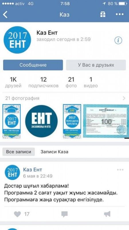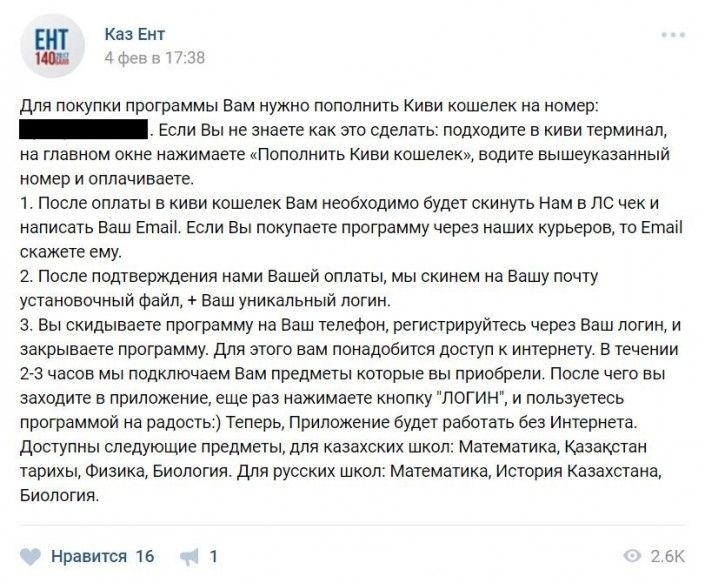 В социальных сетях начали продавать программу, которая якобы помогает набрать хорошие баллы на ЕНТ. Об этом в Facebook написал алматинец Дидар Марданов, сообщает Tengrinews.kz.