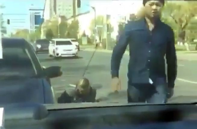 В соцсетях появилось видео, на котором юноша жестоко избивает и пинает водителя намного старше него, сообщает NUR.KZ.