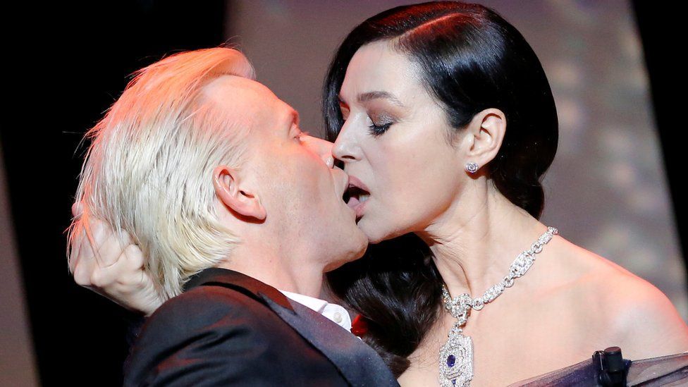 Моника Беллуччи была ведущей церемонии открытия. Зачем прямо на сцене она поцеловала своего коллегу Алекса Лутса, неизвестно.