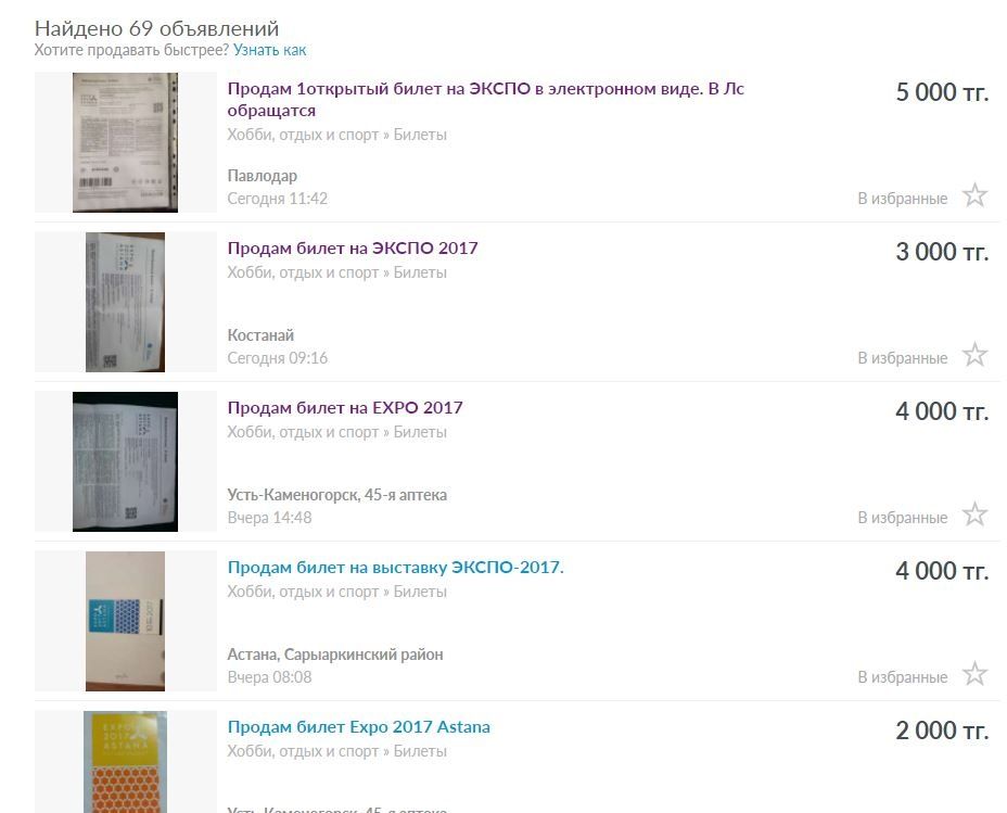 Объявления от частных лиц о продаже билетов на ЭКСПО-2017 появились в интернете. Казахстанцы предлагают их по уценённой стоимости.