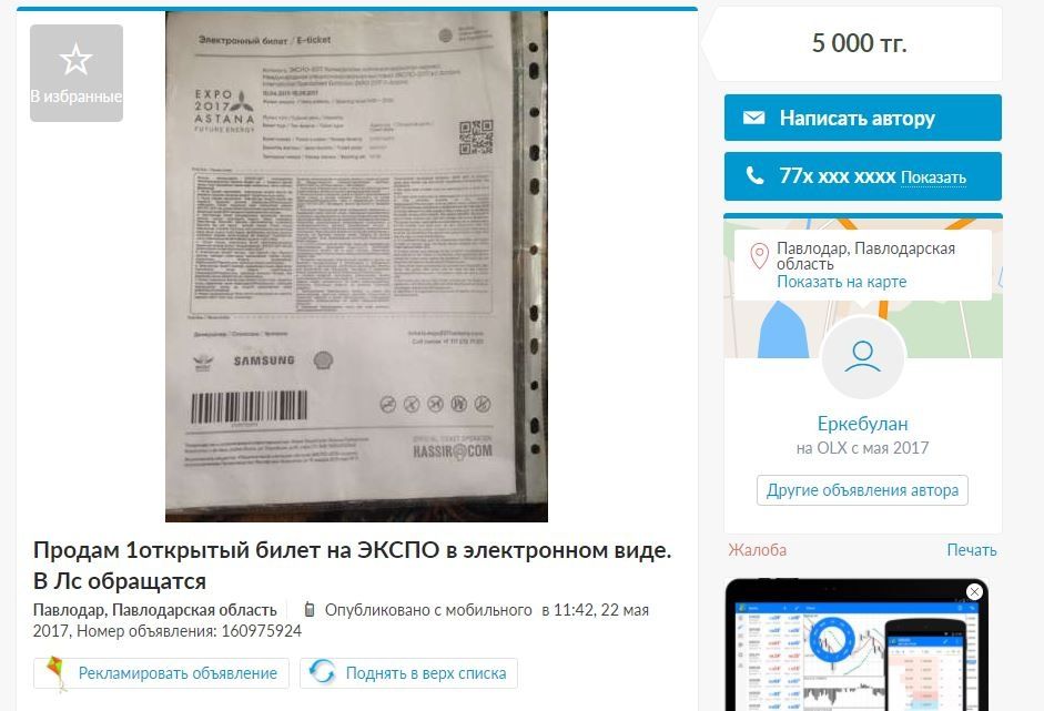 Учителя, врачи и школьники публикуют в интернете объявления, чтобы избавиться от приобретённых билетов на выставку, передает Informburo.kz.
