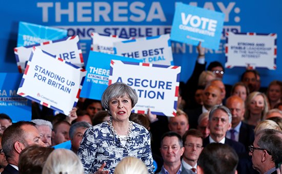 По последним данным экзит-полов, победу на парламентских выборах в Великобритании одерживает партия консерваторов, возглавляемая Терезой Мэй. Они получают 314 мест из 650, таким образом, уступая абсолютное большинство в парламенте. Лейбористы получают 266 голосов, дальше со значительным отставанием идут Шотландская партия (SNP) с 34 местами, Либерально-демократическая партия — 14 мест, Плайд Кимру — 3 места, Зеленая партия Англии и Уэльса — 1 место, Партия независимости Соединенного Королевства (UKIP) - 0, а также другие политические партии, которые суммарно заняли 18 мест.