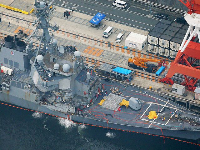 Американский эсминец столкнулся с торговым судном под филиппинским флагом рано утром в субботу недалеко от японского порта Симода. Троих раненых, в том числе капитана корабля, эвакуировали на военную базу США Йокосука вертолетом. Остальная команда вела борьбу за живучесть корабля.