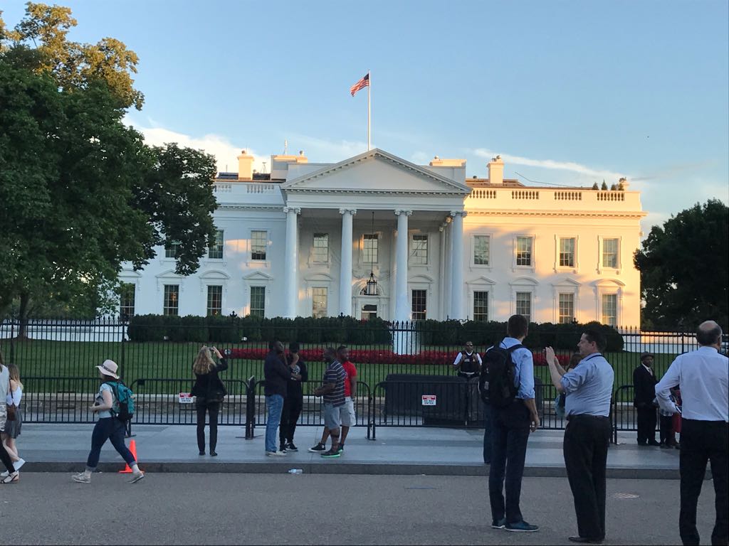Насыщенная рабочая программа оставляла не так много времени на прогулки по городу, к сожалению. Из обязательного получилось увидеть оплот администрации США. Белый дом оказался очень скромный по размерам особняк, в котором на проживание конкретно президентской семьи отводятся всего два этажа, остальные имеют служебное назначение. Больше меня поразило другое «жилище» – на площади Лафайет, ровно напротив северного входа в Белый дом, в каких-то ста метрах от ограждения мозолит глаза всем американским президентам последних трех десятилетий пластиковая палатка с невероятными в наших реалиях плакатами. Им десятки лет, судя по требованиям остановить войну во Вьетнаме и Ираке. Из свежего – требование объявить импичмент Дональду Трампу, изображенному в виде кучи фекалий, простите. Полиция и охрана Белого дома ходят рядом, с удовольствием позируют на камеры, следят за порядком и безопасностью туристов и совершенно не реагируют на возмутителя – согласно первой поправки к Конституции США он имеет законодательное право на свободу слова при выражении своего мнения о публичной фигуре. Как рассказал активист протестного движения Бери Морроу, очень похожий одновременно на бомжа и на монаха, их тут группа человек из пяти, они здесь протестуют с 1981 года. К слову, первой забастовщицей была эмигрантка из Испании Кончита Пичотто, сделавшая протест формой своего существования. Старушка бастовала 35 лет и умерла в январе этого года. На свято место заступили ее товарищи, и вашингтонская достопримечательность на радость туристам не пустует.