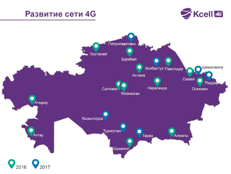 Компания «Кселл» продолжает развитие сети 4G/LTE в Казахстане. В первые шесть месяцев 2017 года доступ к высокоскоростному мобильному интернету получили жители Риддера, Тараза, Туркестана, Кызылорды, Петропавловска, Шемонаихи и Экибастуза. Всего же с момента запуска в августе прошлого года сетью четвертого поколения покрыты 20 городов страны, в которых проживает более 40% казахстанцев.