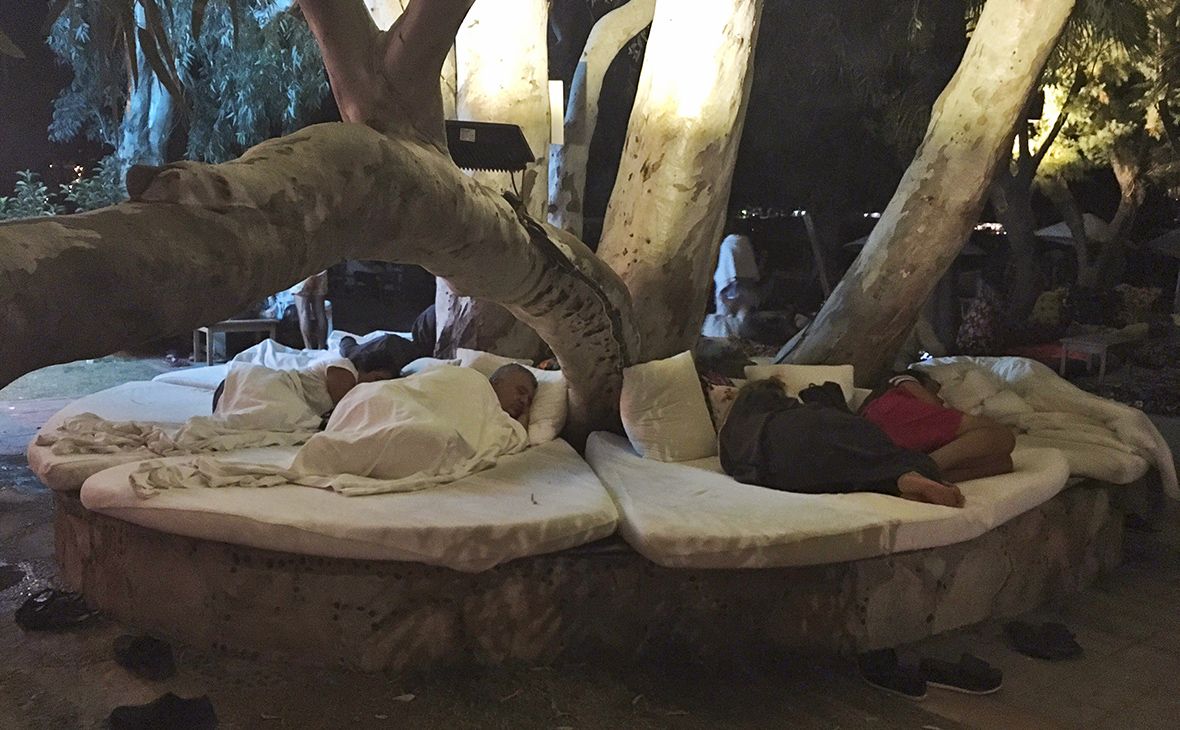 Туристы покинули свои номера из-за землетрясения и спят на территории отеля в Битезе, Турция. 21 июля 2017 года (Фото: Ayse Wieting / AP)