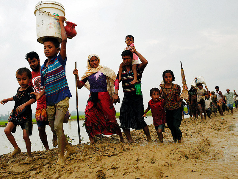 Рохинджа, бежавшие в Бангладеш, рассказывают о поджогах деревень и кампании по вытеснению представителей мусульманского меньшинства с территории Мьянмы. СМИ сообщают, что военные Мьянмы стреляют в рохинджа без разбора. Официальные власти утверждают, что мусульмане сами сжигают свои деревни, а вооруженные силы защищают гражданских лиц от "террористов и экстремистов".