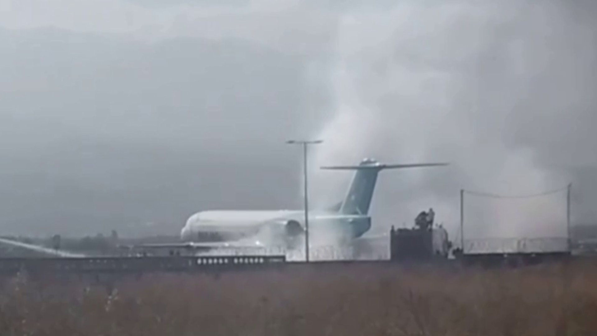 В Сети появилось видео тушения самолета в районе алматинского аэропорта, передает корреспондент Tengrinews.kz.
