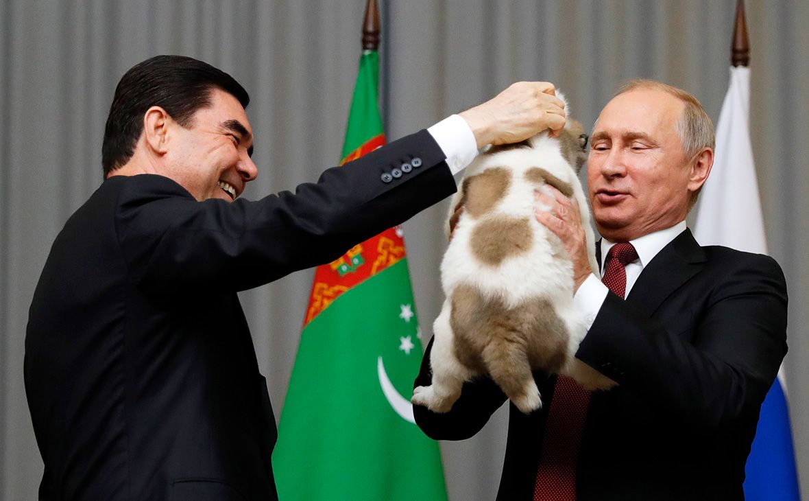Президент Туркмении Гурбангулы Бердымухамедов, прибывший в Сочи для участия в заседаниях Совета глав государств — участников СНГ и Высшего Евразийского экономического совета, подарил Путину щенка породы туркменский алабай, передает РБК.