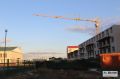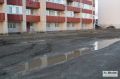 Этот пятиэтажный дом был сдан в эксплуатацию два года назад, сейчас по обеим сторонам идет стройка, впереди - школьная ограда, позади - грязь. Только после того, как нынешним летом было заявлено, что приедет начальство с проверкой, позади дома была срочно построена дорога, но въездной дороги до сих пор нет.