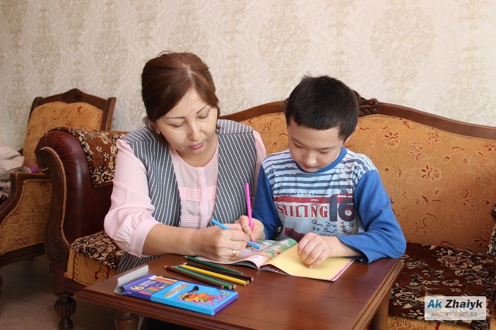 Элеонора занимается шестью детьми с ограниченными возможностями. Мы вместе зашли к одному из них – Еркебулану. Элеонора приходит к нему дважды в неделю на два часа. Кроме того, дважды в месяц дают 30-минутный урок приходящие учителя русского и английского и три раза в неделю – учитель математики.