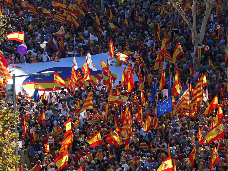 1 октября в Каталонии прошел референдум о независимости, который фактически был сорван правоохранительными органами Испании и сопровождался массовыми беспорядками, приведшими к многочисленным пострадавшим. Тем не менее около 90% участников референдума проголосовали за независимость от Испании. Конституционный суд Испании признал голосование не соответствующим конституции. В Евросоюзе неоднократно заявляли, что не признают независимость Каталонии, так как автономия нарушила конституцию Испании.