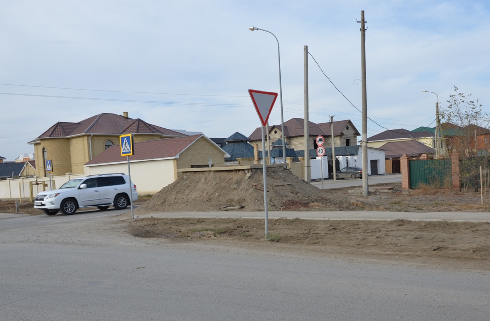 На пересечении улиц №11 и Р. Габдиева в микрорайоне Нурсая расположен распределительный колодец, присыпанный землей. Из-за него невозможно увидеть автомобили, которые едут с противоположной стороны.
