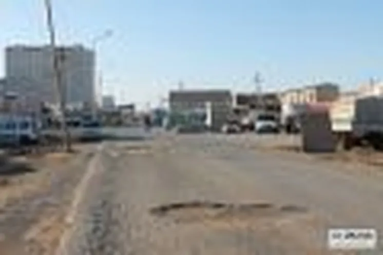 Новое асфальтовое покрытие в мкр. Контейнерный разбивается большегрузными фурами. Также асфальт был поврежден в ходе подведения теплотрассы к новостройкам мкр. Береке.