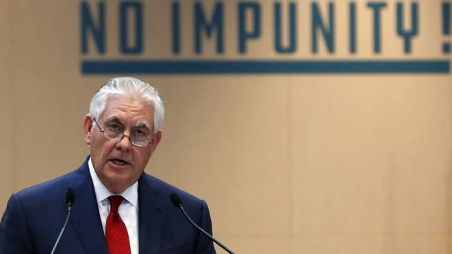 "Только вчера [в понедельник - прим. Би-би-си] более 20 гражданских лиц, в основном детей, стали жертвами применения, судя по всему, хлора", - сказал Тиллерсон на международной конференции, посвященной химическому оружию.