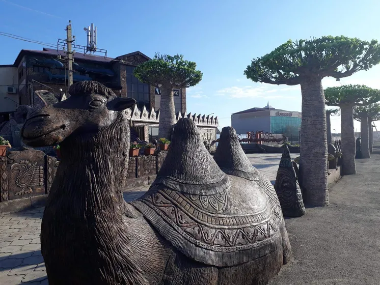 Этот же бесцеремонный художник украсил одно из развлекательных мест Атырау в африканском и морском стилях: крокодилы, бегемоты, носороги, птицы, рыбы, дельфины, павлины… На фоне этих скульптур фотографируются, гуляют с детьми, просто любуются - место популярное и не заметить его сложно. Автора этой сказки зовут Якуб ТУРСУМЕТОВ. Он скульптор из Узбекистана, уже более десяти лет живущий в Атырау.