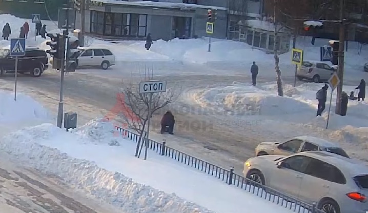 ДТП попало на видео, которое разместили в социальных сетях. На нем женщина падает, переходя улицу у обочины, а белая Lada Granta проезжает, нарочно сильно задев беспомощную женщину.
