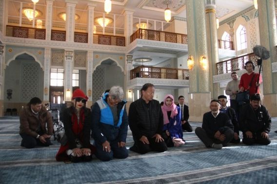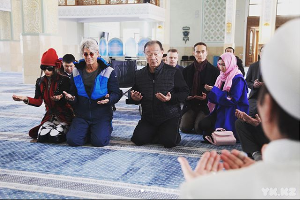 Кульминацией встречи стала всеобщая молитва о здоровье и благополучии. Отдавая дань уважения традициям, актеры преклонили колени вместе со всеми присутствующими. В завершение визита гостям презентовали книги, изданные мечетью Хазрет Султан в Астане. В них на трех языках рассказывается о развитии исламской религии и культуры в Казахстане.