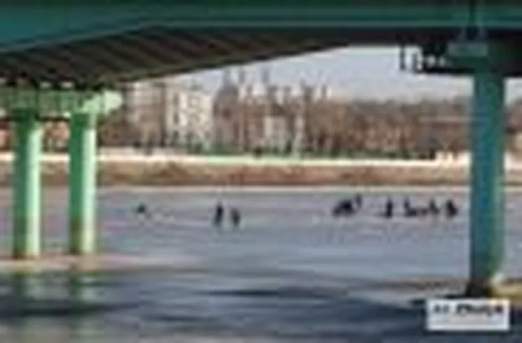 Потеплело, однако заядлые рыбаки не спешат покидать Урал. Также до сих пор некоторые горожане сокращают свой путь, выбирая не мосты, а скользкую тропинку по реке.