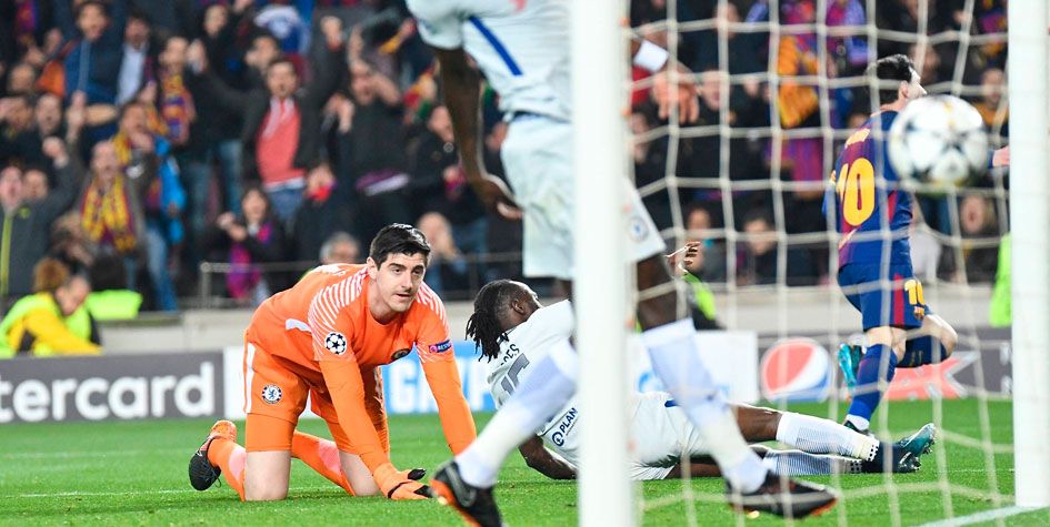 Счет в матче на «Камп Ноу» был открыл уже на третьей минуте. Быстрая атака каталонцев закончилась пасом пяткой от Луиса Суареса на Лионеля Месси, и аргентинец ударом с правой ноги отправил мяч между ног Тибо Куртуа. Этот гол стал самым быстрым в карьере форварда «Барселоны».