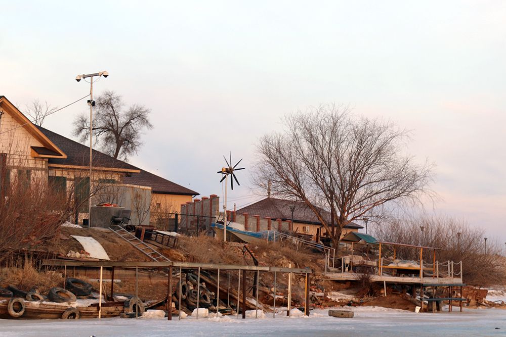И вот прошло ещё 5 лет. Вид набережной кардинально поменялся и отнюдь не в лучшую сторону. Во-первых, её территория существенно сузилась за счет нового соседского забора, и это при том, что придомовая земля расширилась на несколько весомых соток. Во-вторых, Жиенкулов установил на оставшемся клочке земли большой гараж, ветрогенератор, устроил стоянку катеров и построил два пирса – большой и малый. В общем, сложилось впечатление, что набережная и вправду перешла в его собственность.