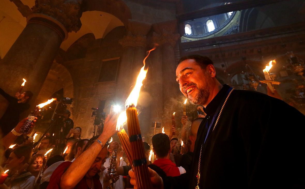 Как сообщает агентство «РИА Новости», в часовне над пещерой Гроба Господня в Иерусалиме появился Благодатный огонь. После этого патриарх Феофил III стал передавать его собравшимся, которые в специальных лампадах отправят огонь в разные страны мира, где православные в эти выходные отмечают Пасху.
