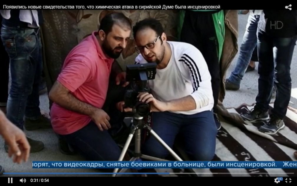 На "Первом канале" кадры сопровождались следующими словами ведущей: "Западные политики и пресса игнорируют очевидные доказательства того, что никакой химической атаки в сирийском городе Дума не было. Накануне появились свидетельства очевидцев, они также говорят, что видеокадры, снятые боевиками в больнице, были инсценировкой".