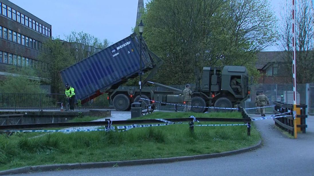 По данным телеканала, три военных грузовика прибыли к торговому центру The Maltings, на скамейке рядом с которым Скрипали были обнаружены в бессознательном состоянии.
