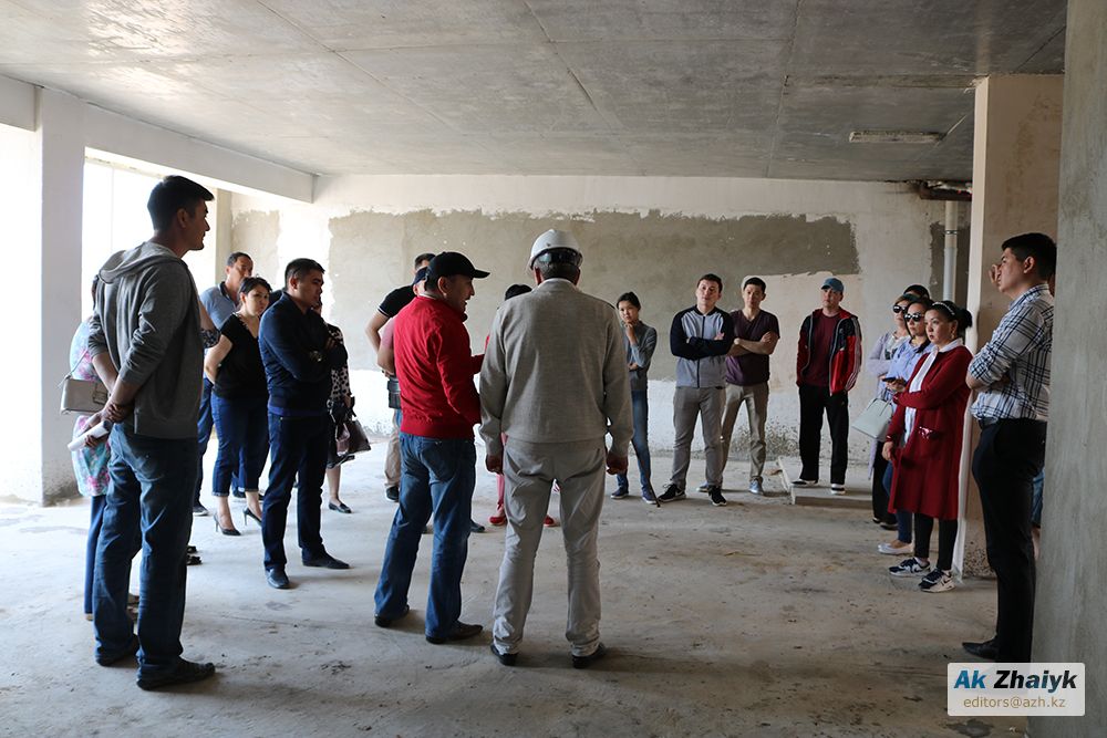 На днях жители ЖК «Сункар» в мкр. Нурсая собрались во дворе своих домов и выразили недовольство тем, что строительство комплекса, в котором они поселились два года назад, фактически до сих пор не закончено. Об акции они оповестили областной и городской акимат, но пришли только работники прокуратуры и участковый полицейский.