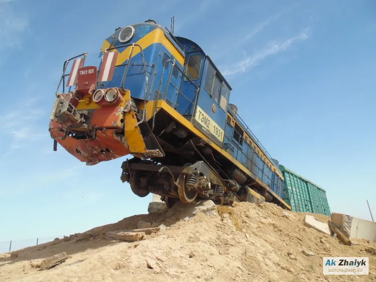 24 мая с.г. в тупике железной дороги Макат-Индер близ райцентра Индерборский Атырауской области на высокой скорости сошёл с рельсов тепловоз. Он до сих пор остаётся на месте происшествия, под него только подставили бетонные подпорки.