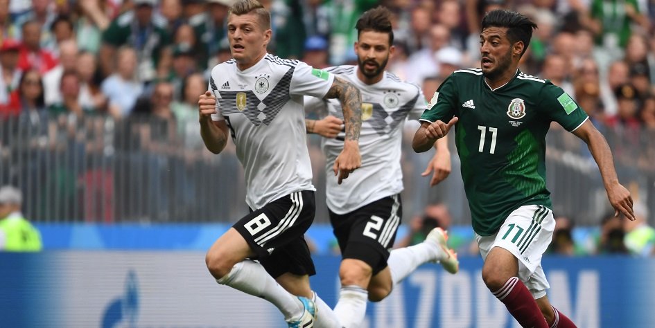 Мексиканцы забили единственный гол на 35-й минуте, проведя быструю контратаку. Эктор Эррера перехватил на своей половине поля, отдал проникающую передачу на Хавьера Эрнандеса, тот обыгрался с Карлосом Велой, получил обратную передачу и отдал мяч налево — на Ирвинга Лосано. Нападающий сборной Мексики Лосано сместился в центр, обыграл Месута Озила и точно пробил в ближний угол в противоход Мануэлю Нойеру.