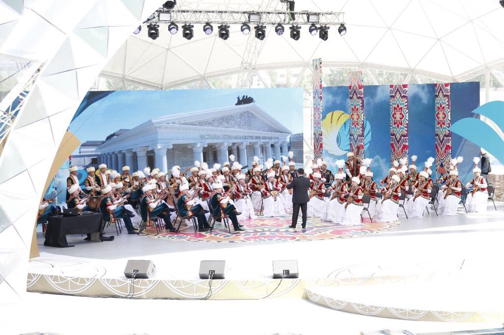 В завершение осмотра на сцене амфитеатра под открытым небом была представлена театрализованная концертная программа «Ұлы дала жүрегі - Астанама», организованная артистами филармонии и концертными коллективами Атырауской области.