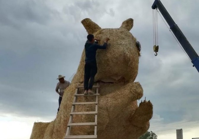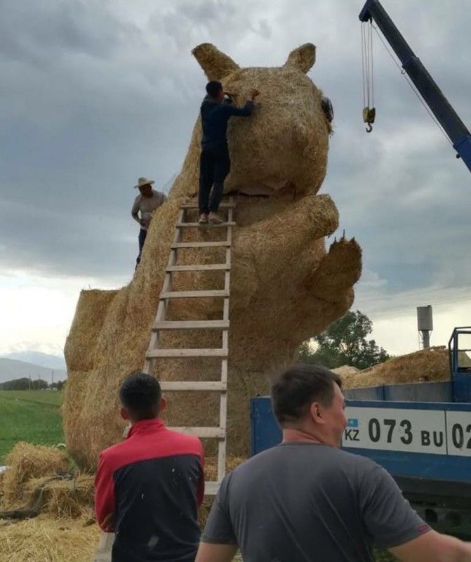 В поселке Алмалыбак Карасайского района Алматинской области студенты построили в поле гигантскую белку. Об этом сообщил пользователь Facebook Куат Ахметжанов в группе "Астана, хочу похвалить/пожаловаться".